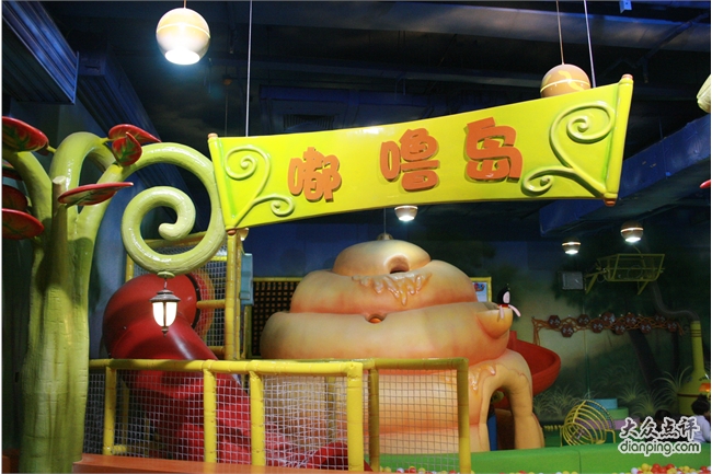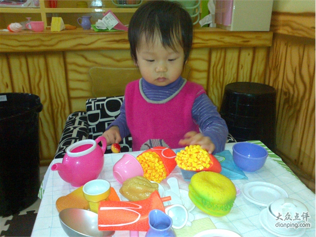 嘟噜岛分了几个区域,一片搭积木的场地,几个连着的小屋子分别是客厅,工作间和超市。客厅里有招待客人用的全套用具,小朋友可以在这里过家家做饭一起喝茶吃 吃汉堡。工作间里有个LITTLE TIKE的工作台,适合想当工程师的小朋友装装螺丝搞点小修理啥的,这里还有一台一弹就有泡沫粒蹦跳的钢琴,很震撼哦。超市里有蔬菜水果和面包,可以模仿超市购物的场景,很有意思。还有一大片区域是海洋球,滑梯,还有球球发射器。唐宝这个年龄的孩子,只对海洋球和滑梯有兴趣,大一些的孩子则疯狂喜欢用发射器把球打得满天乱飞。这里觉得稍微有点不合理,虽然球本身很软,从很高的地方打出来加上发射的力量,砸到海洋球里玩的孩子应该还是会有点小痛吧。最好像豆豆家那样,把球球发射器放在相对封闭的空间里。嘟噜岛里有趣的一点是在空的区域里放了一些宝宝们依靠双脚能发动的小车,唐宝喜欢的不得了,换了好几辆车开的不亦乐乎。