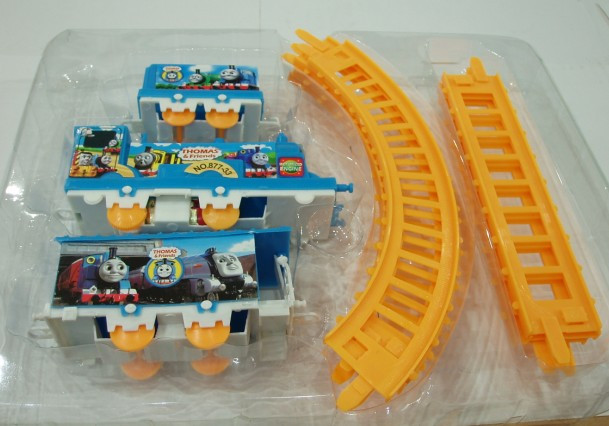 托马斯小火车 【型号】电动轨道车 【材质】塑胶,电子原气件 产品规格:25*4*20.5 彩盒包装 【适用人群】 37个月以上 【商品描述】介绍:最新推出的轨道火车系列,在产品色泽、造型、包装设计等方面都比以往的同类产品有品质上的提升!火车头具有音效功能非常吸引宝宝的注意力! 将轨道进行简单组装后,将火车(带两节车厢)放在轨道内循环运动,形象逼真,是小朋友们喜欢的火车轨道玩具哦.... 培养孩子创造思维能力培养孩子整体规划能力培养孩子动手能力